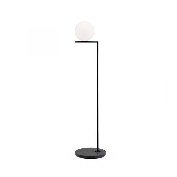 Flos IC F1 outdoor/indoor lampada da terra per interno/esterno IP65. Base in pietra naturale lava nera, asta in acciaio verniciato colore nero e diffusore in vetro soffiato. Dimmer a pedale retroilluminato. Lampada da design a kmzero – in offerta. Solo n. 1 articolo!