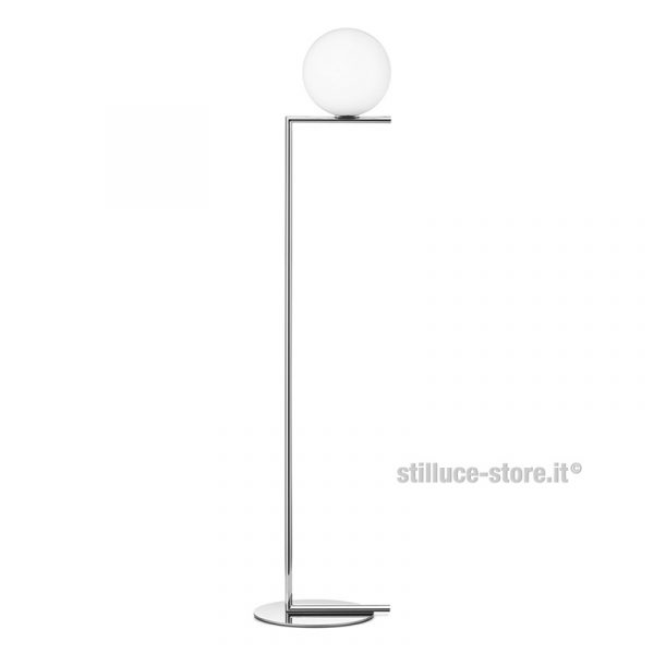 Flos IC F1 lampada da terra, Michael Anastassiades, 2014. Struttura in ottone spazzolato e verniciato trasparente, acciaio cromato o nero con diffusore in vetro soffiato opalino d. 20 cm. Una sfera perfettamente in equilibrio sul bordo di un asta cromata, nera o dorata. La perfezione e la stabilità ispirano il designer Anastassiedes a creare questa collezione di lampade dal design particolare e ricercato. Il vetro opalino della lampada garantisce un ottima diffusione della luce. Dimmer su cavo. Disponibile anche nei modelli da tavolo, parete e soffitto.