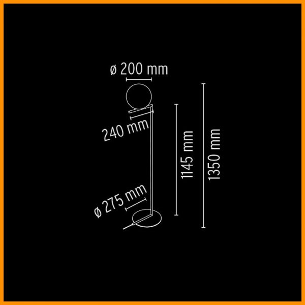 • Dimensioni: base ø 275 mm. - vetro ø 200 mm. - altezza totale 1350 mm