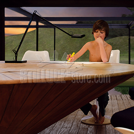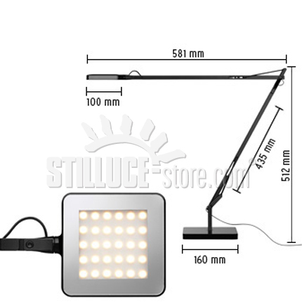 Flos Kelvin lampada da tavolo a LED; Antonio Citterio with Toan Nguyennbsp designer. Corpo in lega di alluminio colato, testa in alluminio pressofuso con diffusore in metacrilato stampato ad iniezione. Base in ABS + acciaio. Testa orientabile rotazione 355°, braccio a pantografo rotazione 360°. L’interruttore elettronico con funzionamento ottico è posizionato sulla testa, per l’accensione, lo spegnimento e la regolazione della luce. N. 30 TOP LED 3000K – 568 lumen CRI 95 – 7,5W green mode – inclusi. Un diffusore studiato ad hoc, che utilizza una particolare tecnica di fotoincisione chimica, garantisce una luce calda, morbida e confortevole, evitando i forti contrasti visivi e abbagliamento. Un completo controllo della luce ed estrema flessibilità di orientamento rendono questo apparecchio adatto anche ad usi professionali, quali l’illuminazione delle aree di lavoro, in perfetta armonia e rispondenza delle normative Europee re nazionali in vigore. Colori : bianco lucido, nero lucido, antracite (opaco).