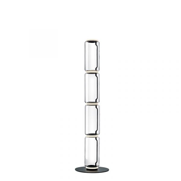 Flos Noctambule Floor 4 High Cylinders lampada da terra composta da quattro cilindri in vetro soffiato. La fonte luminosa LED è posizionata nella giunzione tra un corpo e l’altro. Led integrato 45W 4950lm 2700K