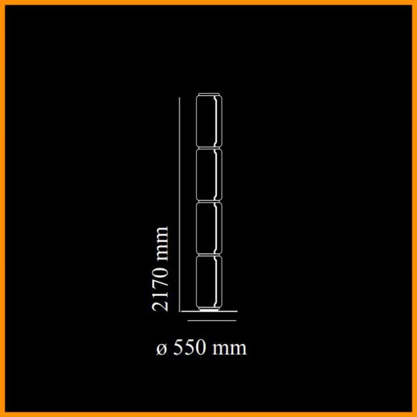 • Dimensioni: d. base 55 cm - d. cylinder 25 cm - h. high cylinder 53 cm - H. tot. 217 cm - lunghezza cavo alim. 2 mt
