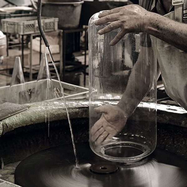 Flos Noctambule 4 High Cylinders lampada da terra, Konstantin Grcic 2019. Collezione di lampade composta da moduli in vetro che si connettono tra loro. Corpi cilindrici in vetro soffiato trasparente, base e anelli in alluminio pressofuso, braccio laterale interno in acciaio idroformato, e diffusore esterni ad anello in solicone ottico opalino stampato ad iniezione. La lunghezza del cavo di alimentazione è di 2 mt con pedaliera che permette di dimerizzare dal 10% al 100% e viceversa. L’accurata tecnologia LED che accende le lampade è integrata in modo discreto nelle giunzioni tra i moduli in vetro. Quasi impercettibile, ma pronta ad attivarsi al calar della notte. Noctambule, il nottambulo, o animale notturno. Quasi invidibile di giorno ma dedito ad affascinanti attività di notte, un’analogia perfetta. Codice prodotto: F0292000