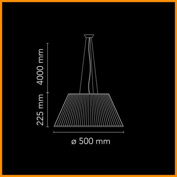 • Dimensioni: diffusore ø 500 mm. x 225 mm. - cavo elettrico 4000 mm.