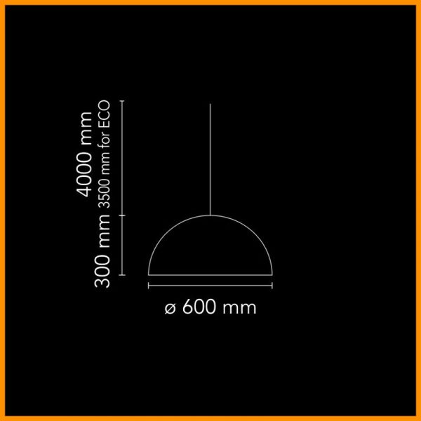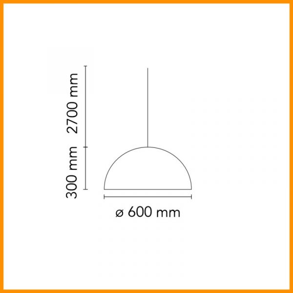 • Dimensioni: diffusore ø 600 mm. x 300 mm. - cavo elettrico 2700 mm.