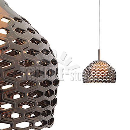 Flos Tatou originale lampada a sospensione d. 50 cm., il diffusore è traforato creando un gioco di luci e ombre. Disponibile nel colore bianco o grigio ocra.