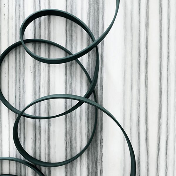 Flos Wireline lampada sospensione; design Formafantasma, 2019. Wireline è una sospensione a luce diffusa composta da un cavo estruso in gomma nel colore verde bosco o rosa di lunghezza utile 3 mt, il rosone in PC stampato nelle stesse finiture del cavo, tubolare in vetro estruso trasparente e diffusore in PC opale, ghiere in inox satinato. Lampada dimmerabile in diversi sistemi, dali, Push 1 -10, potenziometro oppure in assenza di questi sistemi si può settare il flusso luminoso in fase di installazione. Sorgente luminosa LED 45W 2793lm 2700K CRI>90 inclusa.