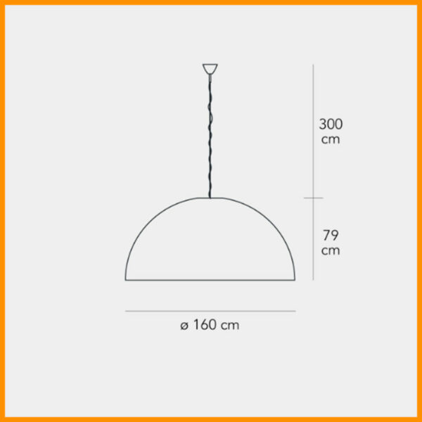 • Dimensioni: d. 160 cm. - altezza 79 cm. - altezza totale 379 cm.
