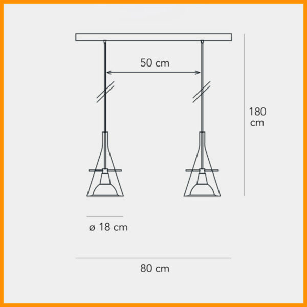 • Dimensioni: canalina L. 80 cm. - diffusore d. 18 cm. - h. 180 cm.
