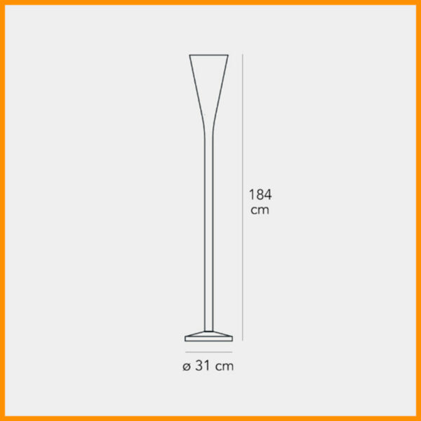 FontanaArte Luminator; design: Pietro Chiesa, 1932. Lampada da terra a luce indiretta dimmerabile (a pavimento tramite pulsante) con montatura in metallo verniciatore nei colori bianco, blu, nichel satinato. Cavo di alimentazione, dimmer e spina di colore nero. Dotata di LED integrato. Luminator è uno dei primo progetti di Pietro Chiesa, la prima lampada da terra al illuminazione indiretta, un sottile fusto in metallo che si apre a cono dove all’interno si trova la sorgente luminosa. Codice prodotto: F005630200NSWL