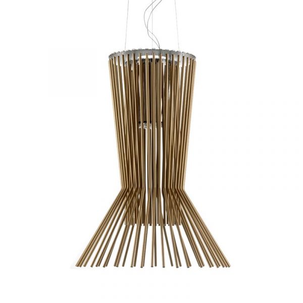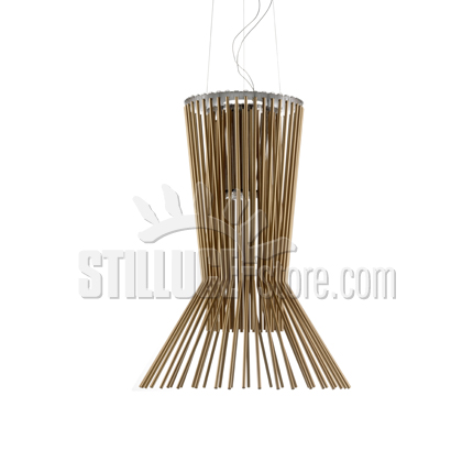 Foscarini Allegretto Vivace lampada a sospensione in alluminio verniciato e metallo nel colore rame. Luce diffusa, diretta verso il basso e riflessa a soffitto.