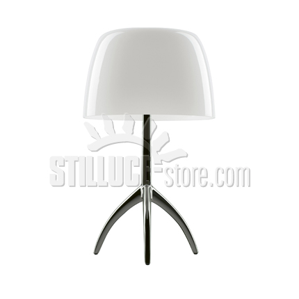 Foscarini Lumiere lampada da tavolo con struttura in alluminio e diffusore in vetro soffiato disponibile nei colori: bianco, bianco caldo o ciliegia. Dimmer su cavo.