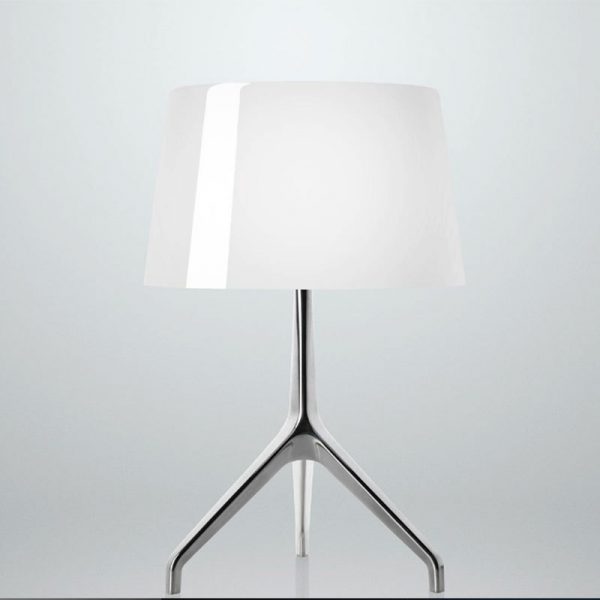Foscarini Lumiere XXL lampada da tavolo, design di Rodolfo Dordoni, 2009. Struttura in alluminio e diffusore in vetro soffiato disponibile nel colore bianco o grigio. A vent’anni dalla nascita di Lumiere, uno dei prodotti più famosi di Foscarini, nasce Lumiere XXL; non è un semplice ingrandimento di Lumiere, ma un prodotto completamente ripensato, in funzione delle sue nuove proporzioni e del suo utilizzo specifico. Il treppiede è sempre in metallo ma con un segno più deciso e con una nuova finitura, materica e irregolare. Anche il diffusore in vetro soffiato acquista nuove geometrie, oltre ad arricchirsi di valore, in relazione alla difficoltà di ottenere una forma grande e perfetta, soffiando a bocca la materia incandescente, con rara maestria artigianale. Collocata su una scrivania o su un tavolo, Lumiere XXL è capace di caratterizzare l’intero spazio circostante, non solo grazie alle sue dimensioni, ma anche attraverso l’abbinamento di diversi colori per il treppiede e il diffusore, in modo da cambiarne lo stile e la personalità. Dimmer su cavo.