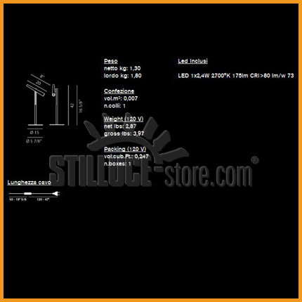 • Lampadina: LED 5W 2700k 475lm CRI>80 - LED inclusi