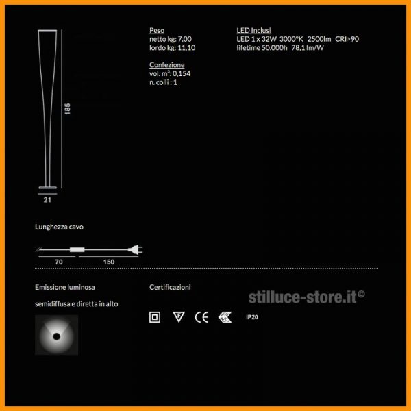 • Dimensioni: ø 21cm. - altezza 185 cm.
