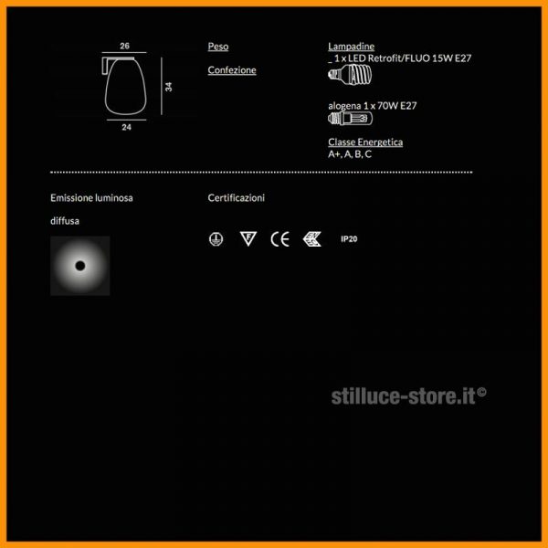 • Dimensioni: Ø 24 cm. - altezza 34 cm. - sporgenza 26 cm.