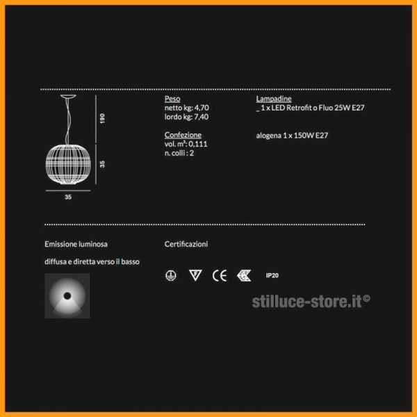 Foscarini Tartan, lampada a sospensione disponibile nel colore bianco. Predisposta per una lampadina E27 alogena eco o LED.
