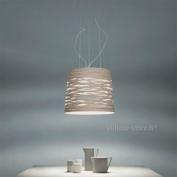 Foscarini Tress lampada a sospensione grande, Marc Sadler designer, 2009. Diffusore in materiale composito su base di fibra di vetro laccato nei colori bianco, nero e greige. Una nuova espressione delle possibilità creative e funzionali dei materiali compositi, già utilizzati per prodotti che sono diventati vere e proprie icone di Foscarini, come mite. Frutto di due anni di ricerche e sviluppo, realizzata con un processo esclusivo, Tress è un intreccio di fili e resina che, nella versione da terra, include lo stesso cavo per l’alimentazione e funge contemporaneamente da struttura, decoro e schermatura, creando un gioco mai visto prima di pieni e vuoti, luci e ombre. Proposta nelle versioni da terra, da tavolo e da sospensione, Tress cambia personalità a seconda del colore: leggera e discreta la versione bianca, forte e decisa la versione nera, vulcanica e totemica la versione rossa, nella quale il contrasto fra l’interno e l’esterno è ancora più evidente. Le sospensioni media e piccola sono studiate per illuminare un’area specifica dello spazio sottostante. Perciò si possono usare singolarmente, per valorizzare un angolo in ombra o un altro spazio di una stanza, oppure in file per creare effetti prospettici. La sospensione grande si caratterizza invece per una propagazione più diffusa della luce. Codice prodotto in base al colore scelto.