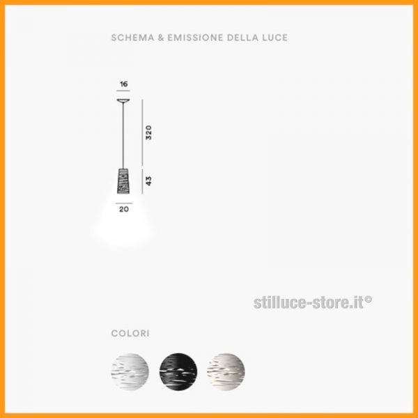 Foscarini Tress, lampada a sospensione, design di Marc Sadler, 2009. Struttura in metallo cromato e diffusore realizzato in materiale composito su base di fibra di vetro laccato. Disponibile nei colori: bianco, nero, greige. Già proposta nelle versioni da terra, da tavolo e da sospensione, Tress si presenta in nuove dimensioni e tipologie che ne ampliano le possibilità espressive e di utilizzo, anche nel contract. La nuova versione a sospensione, anch’essa mini, può essere usata per illuminare punti precisi su un tavolo, lungo un banco oppure in composizioni multiple, abbinata anche alle altre tre dimensioni disponibili.