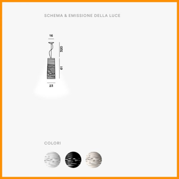 • Tempistica: disponibile subito n. 1 sospensione bianco e n. 1 sospensione nero; atri colori 3 / 5 giorni lavorativi