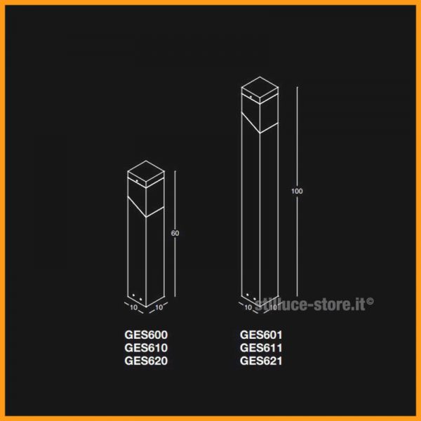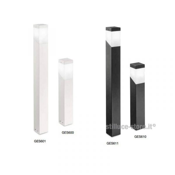Gea Luce lampione da giardino h. 60 cm IP44. Struttura in alluminio e diffusore in policarbonato opale. Una forma semplice e pulita il diffusore permette una buona iluminazione di sentieri, aiuole e giardini. Questa collezione di lampade utilizza lampadine con attacco E27 alogene eco o LED – escluse. Finiture disponibili bianco, grigio antracite o ruggine.