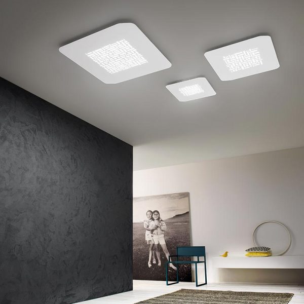 Gea Luce Pixel PM lampada da parete o soffitto LED 52 x 52 cm, disponibile nel colore bianco opaco, nero opaco o anticato acciaio.