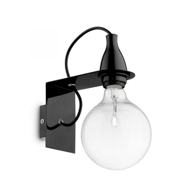Ideal Lux Minimal lampada a parete; design Ideal Lux. Lampada con montatura in metallo rifinito in smalto colorato bianco o nero. Cavo elettrico con rivestimento in tessuto. Lampadina: n. 1 LED E27 8W globo d.125 3000K trasparente inclusa.