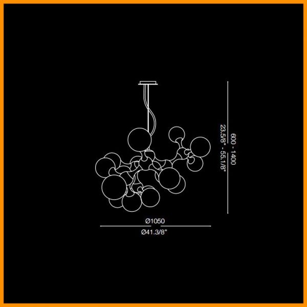 Ideal Lux Nodi lampada a sospensione con 15 luci. Materiali: montatura in metallo cromato oppure in ottone satinato con diffusori in vetro bianco soffiato e acidato di d. 150 mm. Lampadine LED attacco E14 escluse. Disponibile anche nel modello a plafoniera e parete. Una lampada originale e molto luminosa, il vetro bianco diffonde la luce senza infastidire la vista. Codice prodotto 082073 cromato – 241012 ottone satinato.