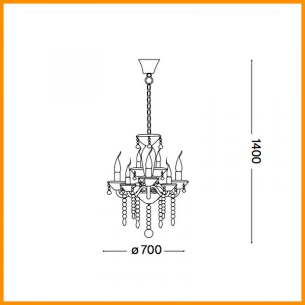 • Lampadina: 230V E14 N. 8 X 28W alogena eco o LED 8 X 4W - escluse