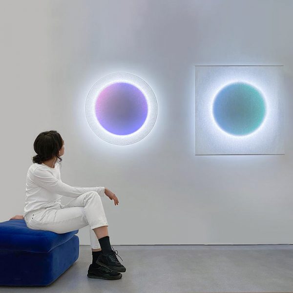 Ingo Maurer MoodMoon RGBW lampada da parete o soffitto di carta con qualità, Sebastian Hepting 2021. Tecnologia LED e arte della carta giapponese: la lampada con diffusore in carta fornisce 14 umori diversi, alcuni statici e alcuni in movimento, controllati tramite la Ingo Maurer Digital App. Ispirato alla Luna Sebastian Hepting ha progettato MoodMoon in tempi di lockdown 2020. MoodMoon promuove la performance da un lato ma anche il benessere e il relax dall’altro. La carta giapponese viene raccolta e setacciata a mano nella fabbrica a Monaco di Baviera per soddisfare gli alti standard di qualità prima di trasformarla in paralumi. Le irregolarità inerenti al materiale sono intenzionali e rendono MoodMoon unica. Grazie agli stati d’animo versatili MoodMoon può essere adattata agli spazi di lavoro (offre relax negli studi medici e nelle aree benessere e arricchisce hotel, negozi e strutture pubbliche) e di vita contemporanei o multifunzionali tramite effetti di colore e di luce per adattarsi alla rispettiva situazione. MoodMoon è un oggetto che mette l’essere umano al centro e si inserisce nel tempo di oggi. MoodMoon RGBW è disponibile in quattro diverse versioni: tondo (piccolo d. 60 cm e grande d. 86 cm), quadrato (piccolo 75×75 cm e grande 105×105 cm).