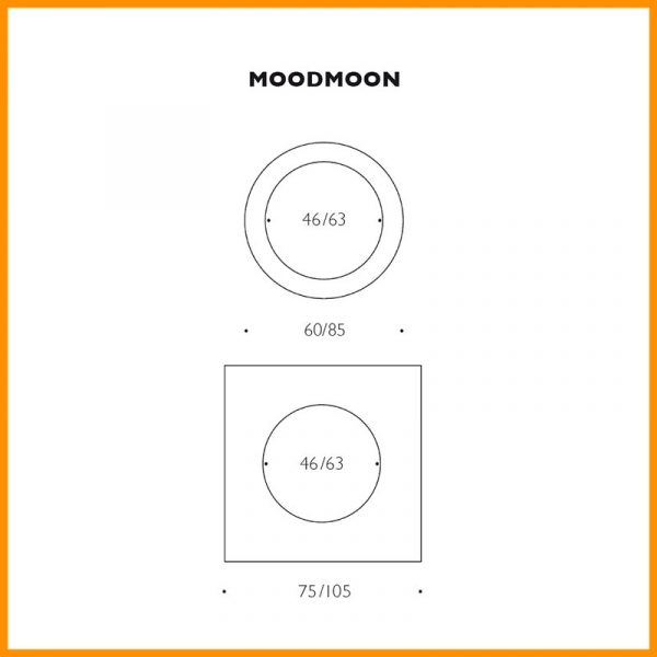 • Dimensioni: Modello Round d. 60 cm o d. 85 cm - Modello Squadro 75x75 cm o 105x105 cm, lunghezza cavo a spina 300 cm