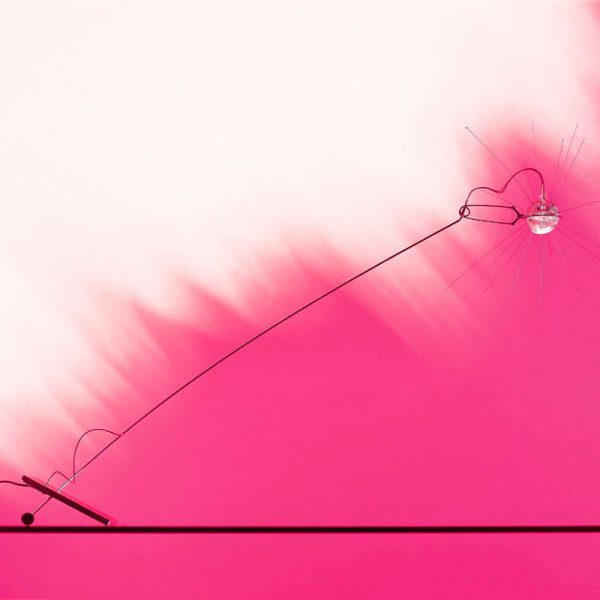 Ingo Maurer Mozzkito lampada da tavolo in metallo, materiale sintetico e gomma. Riflettore regolabile. La piastra mobile consente di variare l’inclinazione della lampada.