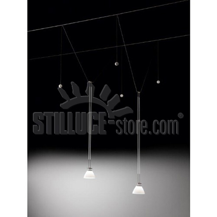 Ingo Maurer Element 14, Elemento con schermo in silicone per il sistema YaYaHo. Adattissimo per una piacevole illuminazione del tavolo senza abbagliare.YaYa Ho è un sistema di luci a basso voltaggio, alimentato da un trasformatore (potenza max 200 watt ) che riduce dal 230 volt a 12 volt.Ogni Part, ogni Element (corpo illuminante da istallare sul cavo) è disponibile anche singolarmente. Per comporre un sistema occorre: PART A (trasformatore), PART B (coppia cavi + tiranti), Element (corpo illuminante). Carico massimo dei cavi 200 watt ( max 5 Element con lampadina 35W ECO (resa 50W) , o max n.10 con lampadina 14W ECO (resa 20W).