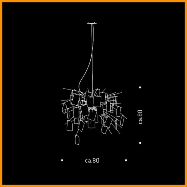 Ingo Maurer Zettel’z 6 lampada a sospensione, Ingo Maurer 1998. Lampadario in acciao inossidabile, vetro satinato termoresistente, carta giapponese. Rosone d. 11 cm. Composto da n. 40 fogli prestampati e n. 40 fogli bianchi DIN A6 dove scrivere frasi o disegni a piacimento. Lunghezza del cavo 200 cm., lunghezza speciale 400 cm. Codice prodotto in base alla lunghezza del cavo scelto.