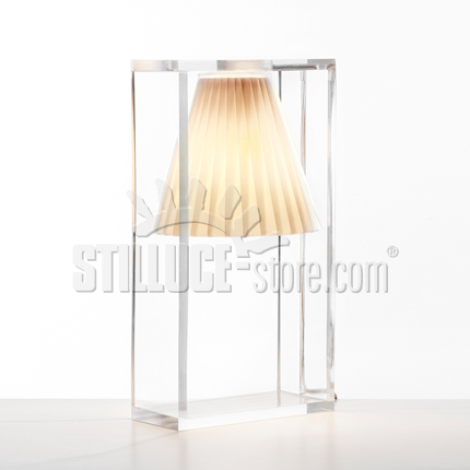Kartell Light Air lampada da tavolo. Struttura e diffusore in tecnopolimero termoplastico trasparente con tessuto interno nel colore beige. Lampadina inclusa.