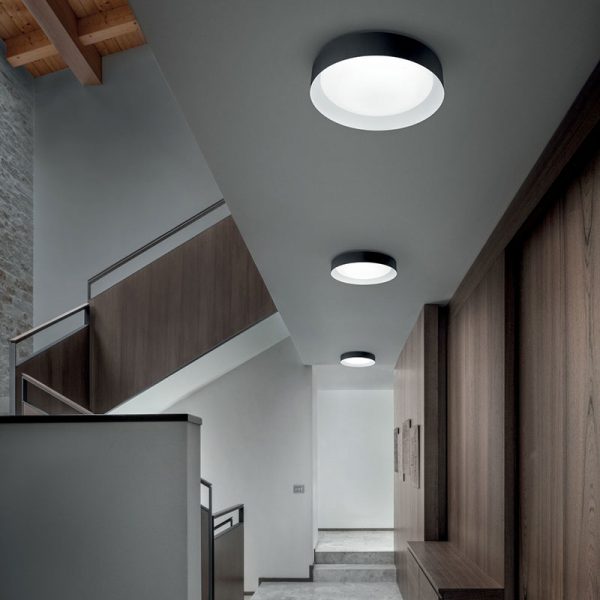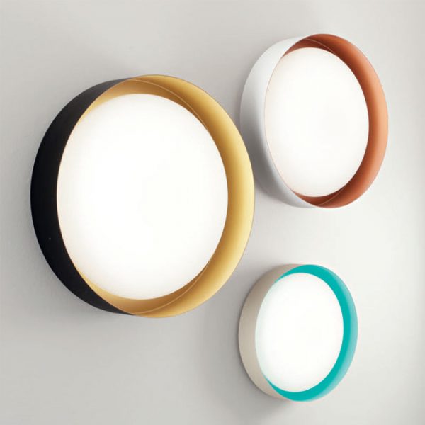 LineaLight Crew 2 lampada da parete o soffitto con montatura in metallo e diffusore in polimetilmetacrilato. Disponibile in cinque colorazioni: bianco, nero/bianco, sablè/verde, bianco/rame o nero/oro. Led integrato 17W 1800lm 3000K.