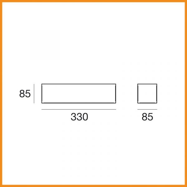• Dimensioni: L. 33 cm - H. 8,5 cm - SP. 8,5 cm