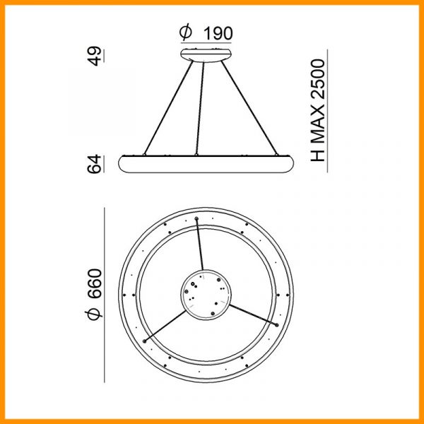 • Dimensioni: D. 66 cm - H. 6,4 cm - H. max 250 cm