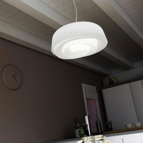 Linea Light Rose lampada da sospensione; LineaLight Studio Design. Come un fiore che s’apre offrendo i propri colori, una sospensione che porge la propria luce come una spontanea manifestazione di bellezza e grazia. Diffusore in polietilene lineare bianco traslucido e corpo in metallo verniciato bianco opaco. Codice prodotto 7655