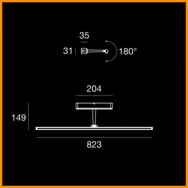 • Dimensioni: Larghezza 82,3 cm - Altezza 14,9 cm. - Diffusore orientabile 180°