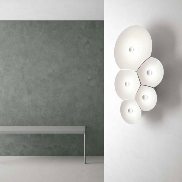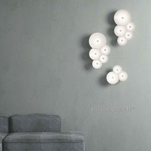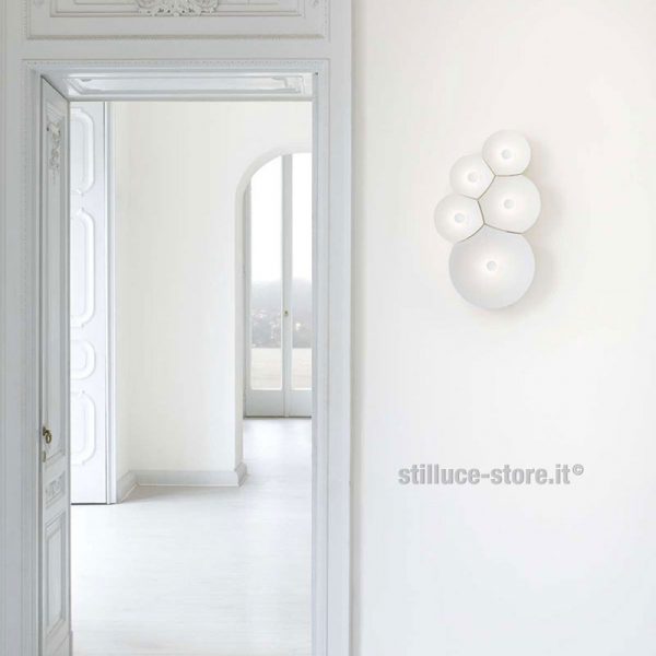 Luceplan Bulbullia lampada a parete LED dalla caratteristica geometria delle bolle di sapone. Luce morbida e gradevole.