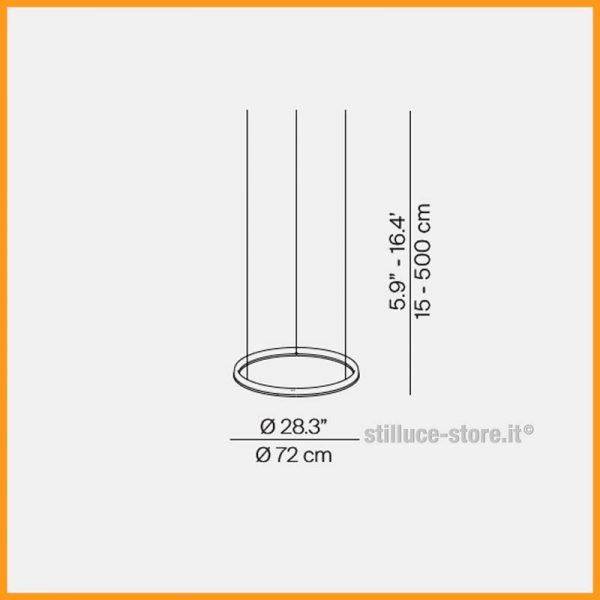 • Dimensioni: cerchio d. 72 cm. - altezza 15 cm. - cavo 500 cm. - rosone d. 24 x 5 cm.