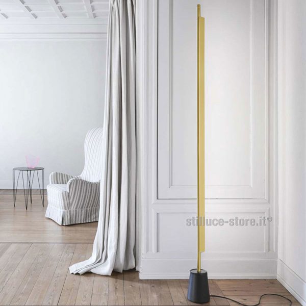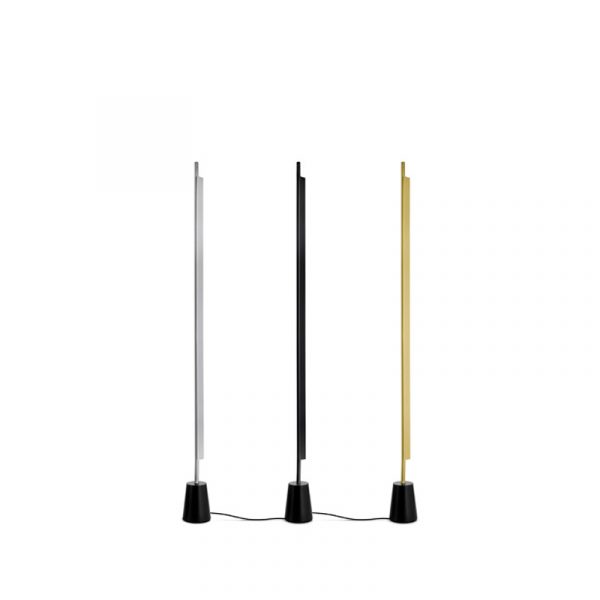 Luceplan Compendium lampada LED da terra composta da una base in pressofusione di alluminio nel colore nero, un profilo orientabile in estruso di alluminio anodizzato nel colore nero, ottone o alluminio. LED 37W 3000K – incluso.