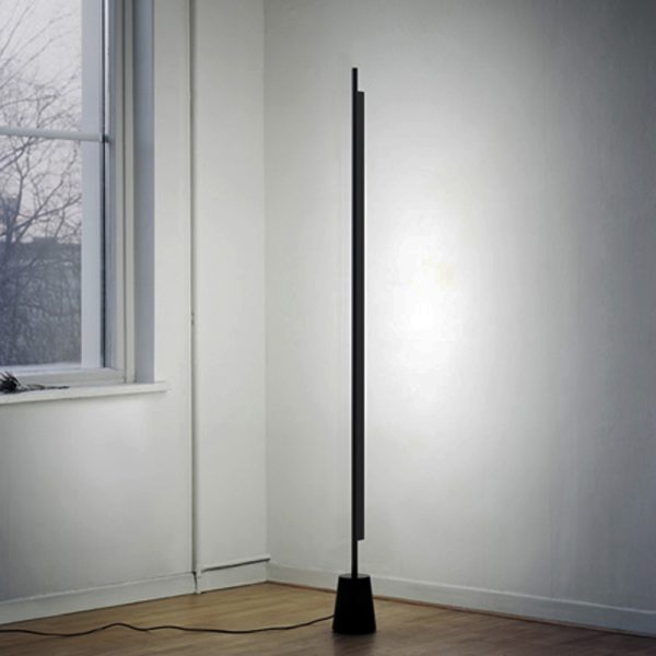Luceplan Compendium lampada LED da terra, Daniel Rybakken designer. Base in pressofusione di alluminio. Un profilo in estruso di alluminio anodizzato nel colore nero, ottone o alluminio con base di colore nero. LED 37W 3000K (luce calda) – incluso. Il corpo snello e verticale si innesta su una base troncoconica di colore nero, un lungo profilo in estruso di alluminio a sezione alettata dove sono posizionati i LED consentendo in tal modo di schermare l’emissione luminosa. Lo stelo ruota liberamente sulla base consentendo di orientare a piacere la luce indiretta. Codice prodotto: D81T1 + D81/26D
