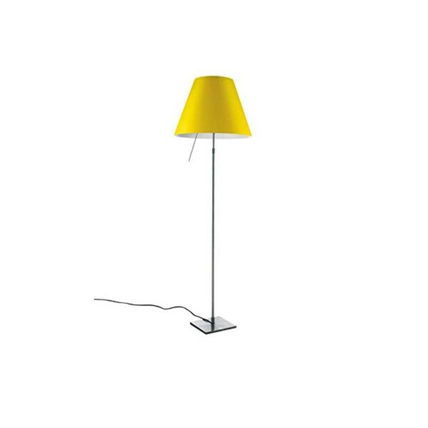 Luceplan Costanza la lampada da terra con dimmer sensoriale ad astina e stelo telescopico. Struttura in alluminio. Paralume in policarbonato serigrafato nei nuovi colori: bianco,verde alchimia, rosa mistico, bianco nebbia, cipria, nocciola, rosso primario, nero liquirizia, blu petrolio, giallo vivo,grigio cemento. Lampadina E27 105W alogena eco (=150w) o LED dimmerabile (esclusa).