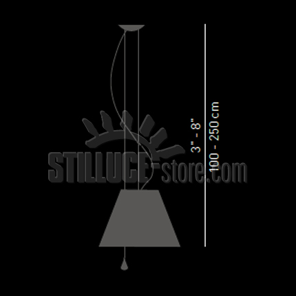 • Dimensioni: paralume Ø 40 cm. (inferiore) - Ø. 20 cm. (superiore) - H. 28 cm.- altezza totale min. 100 max 250 cm.