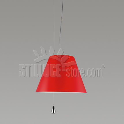 Luceplan Costanza lampada sospensione saliscendi, Paolo Rizzatto designer. Materiali: corpo in alluminio, contrappeso in acciaio cromato opaco, rosone in ABS autoestinguente bianco. Paralume intercambiabile in policarbonato bianco o colorato; mezzo tono: verde alchimia, rosa mistico, bianco nebbia, cipria, nocciola. Radieuse: rosso primario, nero liquirizia, blu petrolio, giallo vivo, grigio cemento. Lampadina: E27 alogena eco o LED – esclusa. Affascinante e inimitabile, è in grado di ricreare le atmosfere più tradizionali, il paralume intercambiabile di policarbonato diffonde una luce calda e gradevole. Il profilo sottile si inserisce con naturalezza in ogni ambiente senza porre vincoli di accostamento stilistico. Grazie all’innovativo sistema di sospensione, è applicabile in qualunque zona del plafone anche senza bisogno di un punto luce già stabilito. Regolabile in altezza. Codice prodotto: D13sa.s.