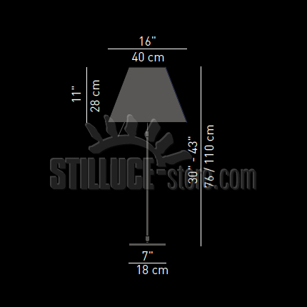 • Dimensioni: H. 76 / 110 cm. base 18x18 cm. paralume Ø 40 cm.
