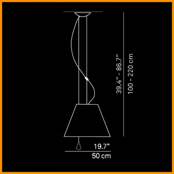 • Dimensioni: paralume d. 50 cm. - altezza totale min. 100 max 250 cm.