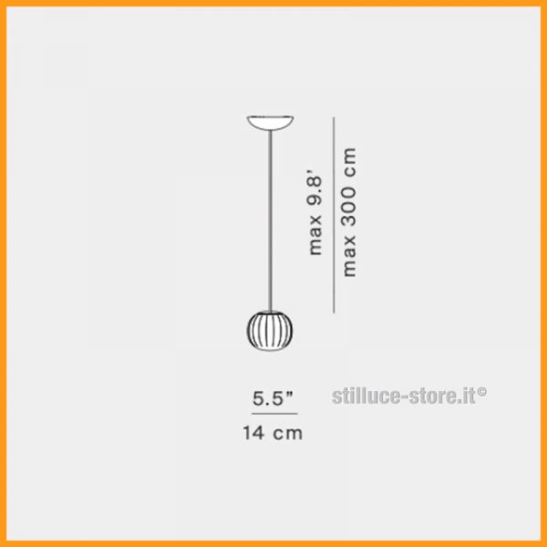 Luceplan Lita lampada a sospensione d. 14 cm, David Dolcini designer. Struttura lampada con particolare finitura ottone o alluminio verniciato bianco, diffusore in vetro satinato opalino. Il diffusore è scandito dalla ripetizione di lievi cuspidi verticali che diventano meno evidenti ai poli, una lampada che unisce tradizione artigianale e ricerca tecnica. Utilizza una lampadina LED G9 (esclusa). Una piccola sfera ideale per illuminare una penisola in composizioni multiple. Codice prodotto: D92S14